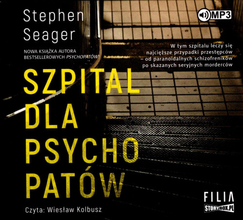 Szpital dla psychopatów [Audiobook] / Stephen Seager ; czyta Wiesław Kolbusz, [przekład Joanna Grabarek]. - [Poznań] : Wydawnictwo Filia ; [Piaseczno] : Storybox.pl, [2021]. - 1 płyta audio (CD) (8 godz. 20 min) : zapis cyfrowy, stereo. ; 12 cm.