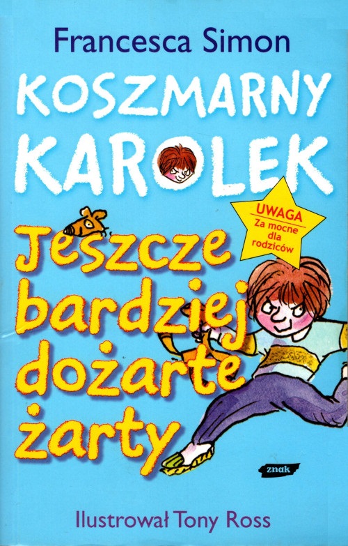 Te kawały są za mocne dla rodziców, nie wolno ich opowiadać babciom, ciociom ani nawet najbardziej postępowym wujkom. Koszmarny Karolek zebrał ulubione dowcipy swoich przyjaciół i wrogów, nauczycieli, uczniów, a nawet swego młodszego brata Doskonałego Damianka. Znajdziecie tu toporne kawały pani Kat-Toporskiej, wredne kawały Wandzi, ordynarne dowcipy Ola i ambitne żarty Arnolda.