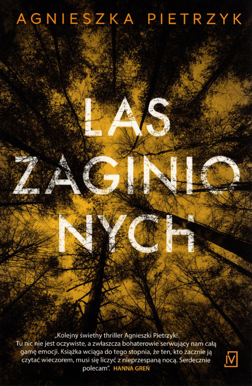 Na okładce: Kolejny świetny thriller Agnieszki Pietrzyk! Tu nic nie jest oczywiste, a zwłaszcza bohaterowie serwujący nam całą gamę emocji. Ksiązka wciąga do tego stopnia, że ten, kto zacznie ją czytać wieczorem, musi się liczyć z nieprzespanż nocą. Serdeczni polecam" Hanna Greńe