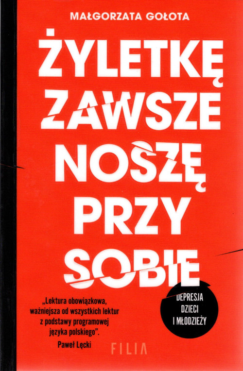 Żyletkę zawsze noszę przy sobie : Depresja dzieci i młodzieży / Małgorzata Gołota. - Wydanie I. - Poznań : Filia, copyright 2022. - 350, [1] strona ; 21 cm.