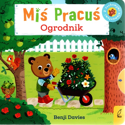 Miś Pracuś, Pracuś Miś, nowe zadanie będzie miał dziś! Przesuń ruchome elementy, odkryj kryjące się w książce niespodzianki i zobacz, jakie prace można wykonać w ogrodzie. [nota wydawcy].