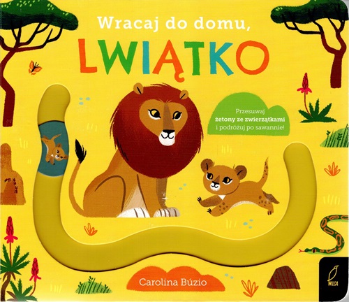 Przesuwaj żetony, aby pomóc zwierzątkom znaleźć drogę do domu! "Wracaj do domu, lwiątko" to kolorowa książka, dzięki której maluch poznaje zwierzeta i ćwiczy rączkę.